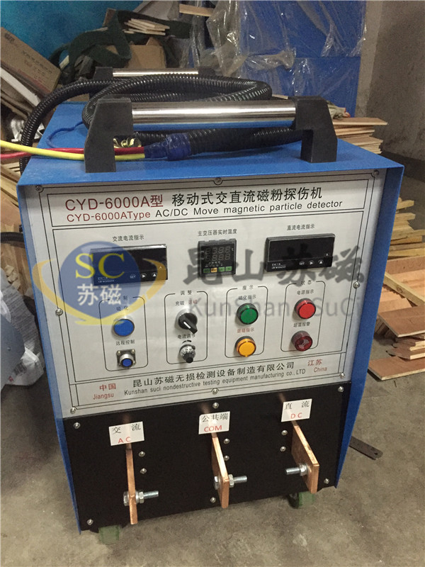 采用交流或交直流磁化電源,儀器配滾輪移動,可現(xiàn)場使用或安放在固定位置使用;